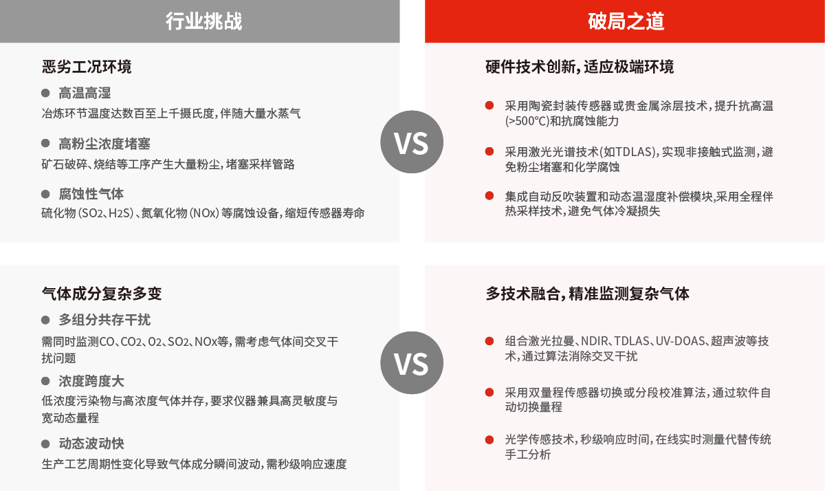 在鋼鐵行業(yè),復雜的工況環(huán)境給氣體監(jiān)測帶來了諸多嚴峻挑戰(zhàn)。高溫高濕、高腐蝕、高粉塵濃度以及氣體交叉干擾等問題,不僅影響監(jiān)測設備的穩(wěn)定性和準確性,還增加了維護成本和安全風險。面對這些行業(yè)難題,四方光電(武漢)儀器有限公司(以下簡稱“四方儀器”)憑借先進的自主技術與創(chuàng)新的解決方案,成功突破傳統(tǒng)監(jiān)測的瓶頸,為工業(yè)氣體監(jiān)測提供了高效、精準、可靠的破局之道。